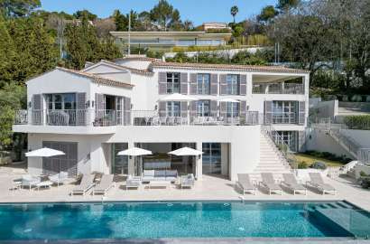 Расположенная в престижном районе Канн, эта недавно и безупречно отреставрированная вилла занимает доминирующее положение и предлагает захватывающие панорамные виды на море и побережье Лазурного берега.