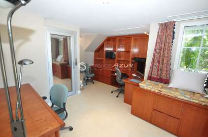 Jolie villa bien placée à quelques minutes à pied des plages de la Garoupe. La villa offre 260 m² de surface habitable, avec sa suite de maître à l'étage, avec 2 SDBs et 2 dressings, grand salon ouvrant sur la terrasse ensoleillée, cuisine séparée entièrement équipée, 3 chambres d'invités avec 2 SDDs, garage en sous-sol pour 2 voitures. Piscine à débordement, pergola avec BBQ, jardin de 1420 m². Air-conditionné, ascenseur desservant tous les étages avec le garage.
