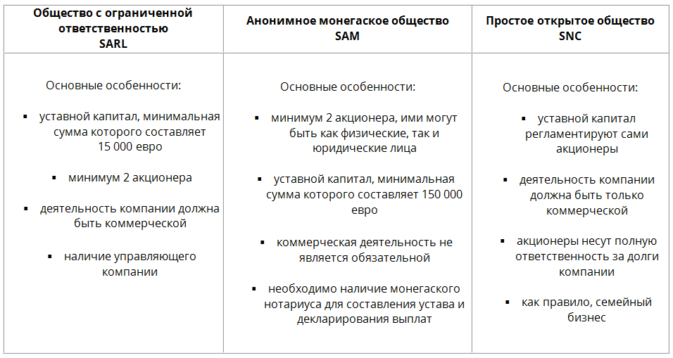 Какую форму управления выбрать при регистрации компании на территории Монако?